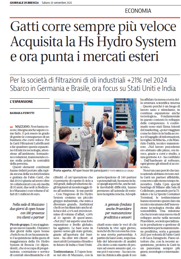 Un nuovo capitolo per Gatti: l’acquisizione di Hs Hydro System